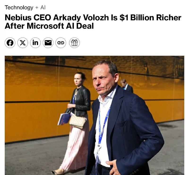 Аркадий Волож за один день увеличил свое состояние почти на $1 миллиард благодаря сделке с Microsoft. Технологический гигант решил арендовать дата-центр его стартапа Nebius (бывший Yandex N.V.) в США.