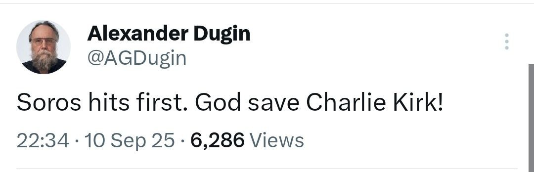 Alexander Dugin on Kirk shooting: 'GOD save Charlie!'