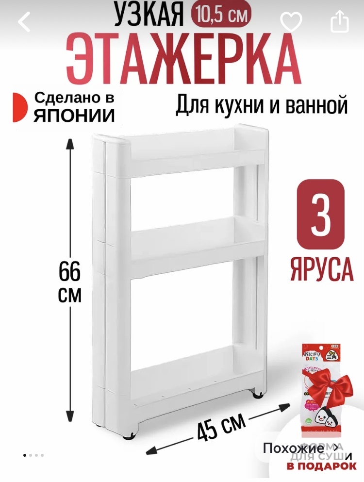 Сегодня у меня для вас подборка полезных находок из Японии для дома с Вайлдберриз. В Японии делаются очень качественные вещи вне зависимости зубная щётка ли это или автомобиль. Японские товары всегда продуманы до мелочей. Простота, практичность, внимание к мелочам, вот пожалуй три параметра так ярко характеризующих японскую продукцию. Очень компактная и вместительная этажерка, но при этом занимает мало места. Крепкая, легко перемещается на колесиках. Легко выкатывается. Подойдёт для ванной, кухни. Размеры этажерки: высота 66 см, глубина 45 см, ширина 10,5 см. Сделана из прочного, качественного пластика. Собирается очень легко. Имеет 3 яруса. Все полочки выдерживают общий вес 20 кг. Незаменимая помощница во всем доме. Благодаря этой этажерке пустое пространство между стеной и стиральной машиной или кухонным шкафом превращается в полезное место для хранения всяких мелочей. Нужная вещь для узкого пространства. Артикул 35064531 Цена 2583 руб. Отличный и полезный прибор для качественной и