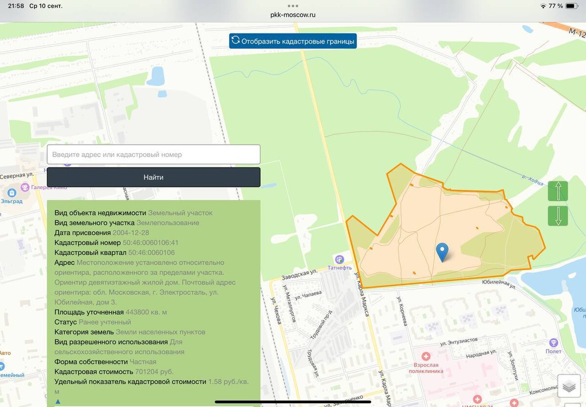 В ответ на пост #отжителя 💬 Здравствуйте. В продолжение ситуации. По кадастровой карте поле 44 гектара действительно в частной собственности и давно, и со смешной кадастровой стоимостью 🥑 Админ : @podslushano_stal 🔥 Подписывайтесь: https://t.me/Elektrostal_podslushano #Электросталь #ПодслушановЭлектростали
