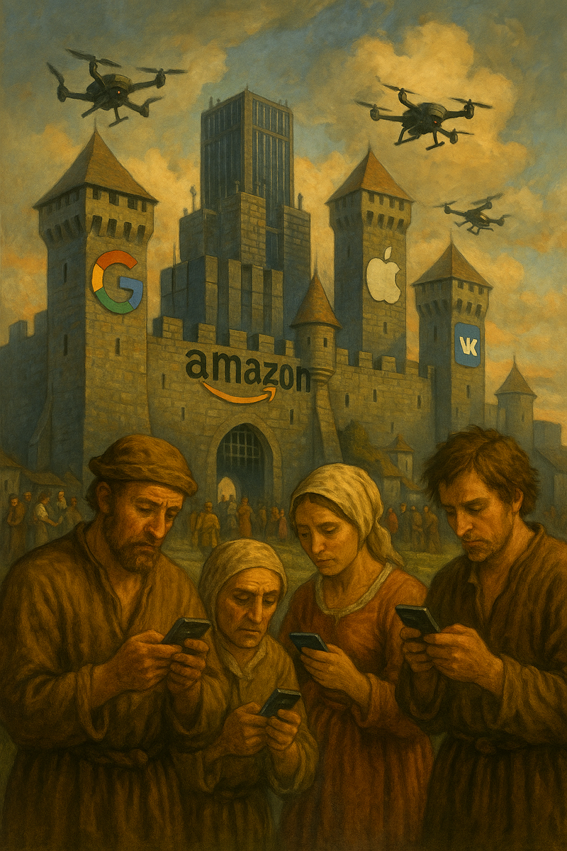 Сегодня земля — это платформа. Google, Amazon, Apple, VK — это не просто компании, это гигантские цифровые феоды. Они владеют виртуальной вотчиной: инфраструктурой, кодом, данными, доступом к аудитории. И как средневековый крестьянин не мог выжить без земли лорда, так и современный бизнес, автор или даже простой пользователь не может выжить без доступа к этим цифровым владениям. Попробуйте запустить бизнес, не платя дань Google за рекламу, Apple за место в App Store или маркетплейсу за право продавать свой товар. Вас просто не увидят. Вы экономически не существуете.