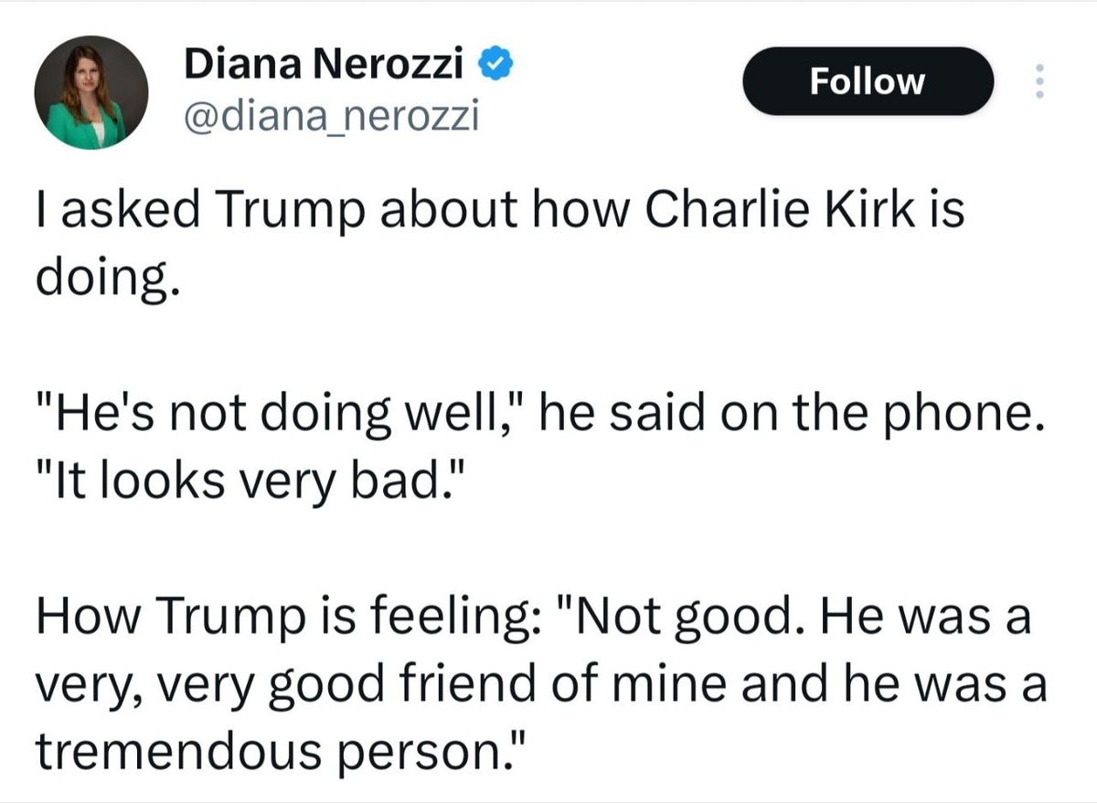 WH Correspondent Nerozzi SPEAKS to Trump about Kirk