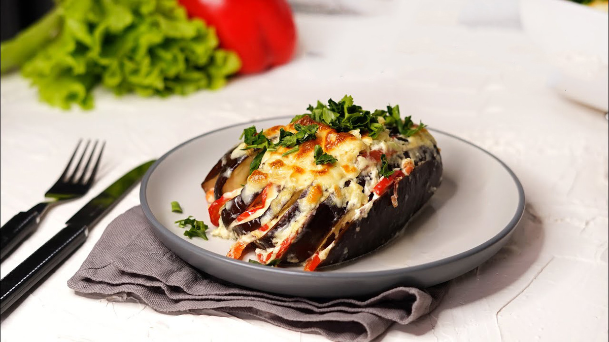 Почему его точно стоит полюбить? Во-первых, это очень сытно, но при этом малокалорийно. Во-вторых, его пористая структура идеально впитывает ароматы специй, трав и масел, превращая в основу для экспериментов. Маленький секрет: чтобы избавиться от возможной горчинки, достаточно нарезанный баклажан посолить и оставить на 20-30 минут. Затем просто промыть под водой и обсушить бумажным полотенцем. А теперь давайте от слов перейдем к делу, а точнее — к двум моим любимым рецептам, которые украсят любой обед и покорят своей простотой и эффектностью. Если вы ищете рецепт, который гарантированно вызовет «вау!»-эффект, но при этом не отнимет у вас полдня на кухне — вы его нашли. Баклажаны, запеченные веером с перцем, помидорами и