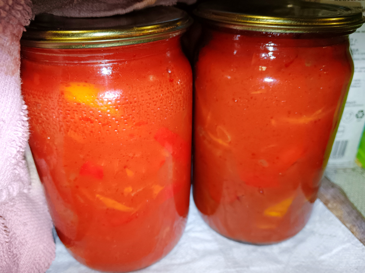 Лечо - думала, это будет последнее, что закрою на зиму, но пока не ясно. Посмотрела - всего четыре литра получилось (одна порция), что то маловато. Остатки, что в банки не поместились с картошкой употребили - а вкусно! Ещё банка пасты у нас есть, перец в теплице остался, лук и морковь, само собой. тоже дома есть. Может повторим. В этот раз лечо делала и с луком, и с морковкой, но поменьше положила их, чем в рецепте (особенно морковки), а перца побольше. Чаще делала только с перцем, но лук все же стоит добавлять, морковь по мне так-сяк, больше как наполнитель.