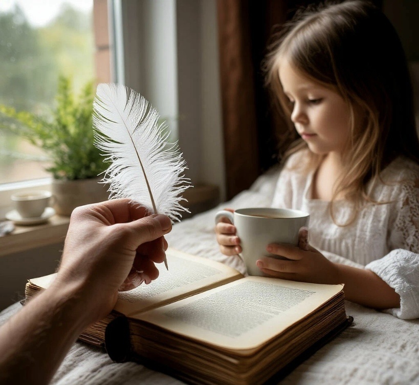 Он сделал движение к мусорному ведру, чтобы выбросить находку, но вдруг замер. Пальцы сами не хотели разжиматься. Он посмотрел на перо ещё раз, потом на дочь, которая уже наливала себе кофе, и что-то ёкнуло у него внутри — тихое, смутное, тёплое.