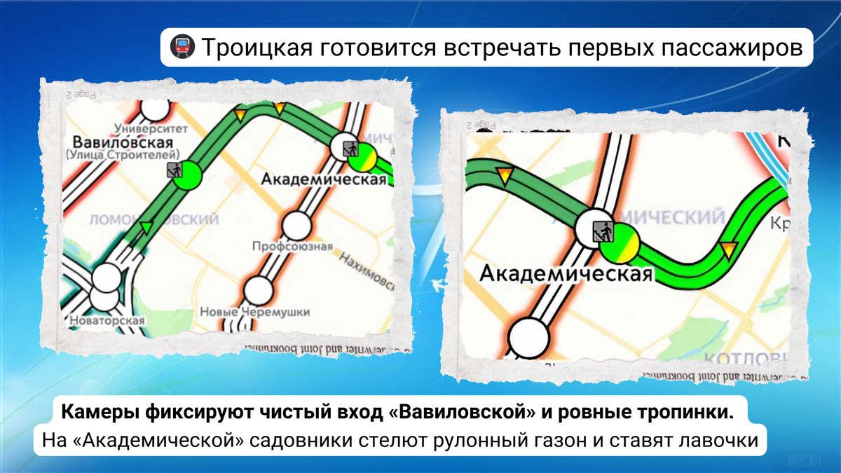 Во-вторых, покажем работы по благоустройству у 🚇 «Академическая» пускового участка 🏡 Троицкой линии