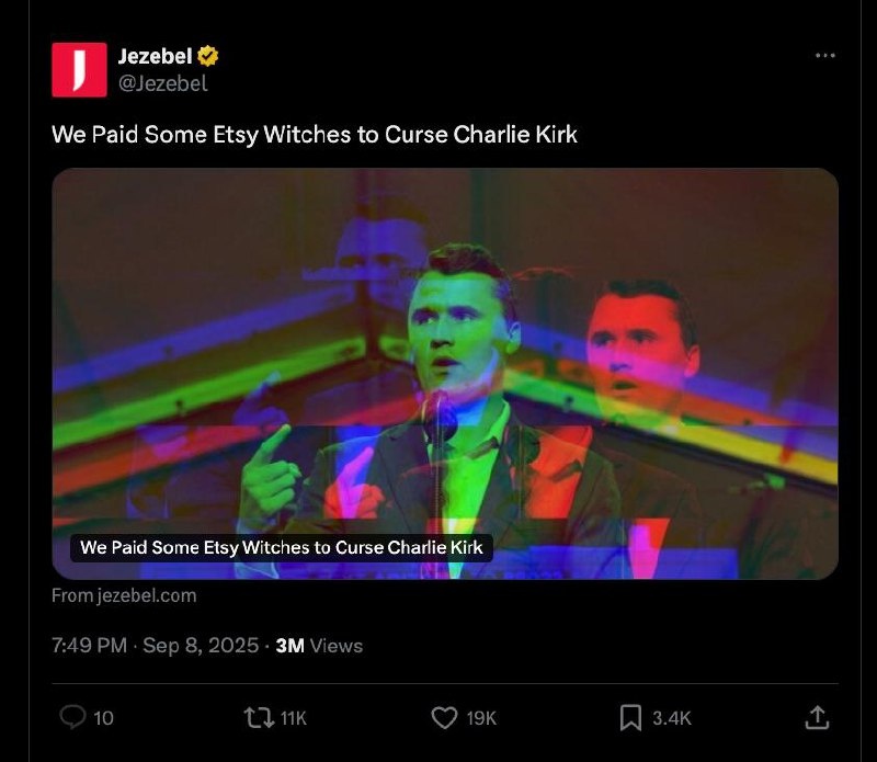 За два дня до покушения издание Jezebel выпустило публикацию о том, что их журналистка заказала проклятье на Чарли Кирка у ведьм