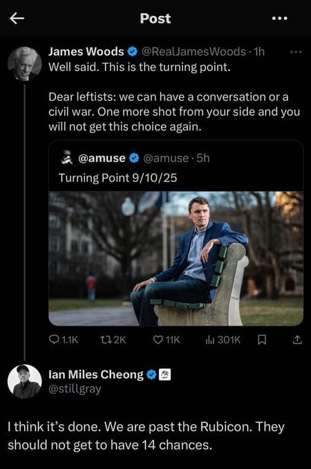 Hollywood actor James Woods wants 'civil war' if '1 more shot'