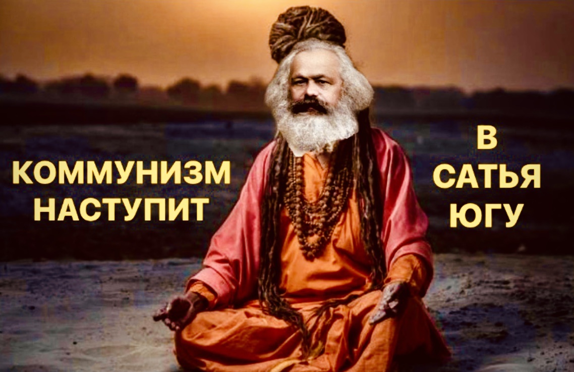 «Шри риши Карл Маркс Бабаджи в основополагающей сутре Капитал ясно указал, что коммунизм настанет в сатья-югу на всей земле сразу, а тоталитарно-деструктивный сектант Ленин решил, что можно построить коммунизм в отдельно взятой стране, только это утопия, потому что сознание людей в период кали-юги не готово принять основополагающую истину альтруизма: «от каждого по способностям - каждому по потребностям», что значит - «служить всем, довольствуясь малым». (шри - святой, риши - мудрец, бабаджи - уважительное обращение к духовному учителю).