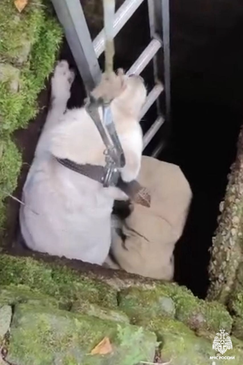 В городе Весьегонске Тверской области к прохожему подошла дворняга и начала громко лаять, затем схватила его за штанину и стала активно дергать. Прохожий удивился, а пес все так же дергал его за одежду, как будто призывая куда-то пойти. Тогда человек решил пойти за собакой, и та привела его к заброшенному подземному резервуару. Оказалось, что туда провалился его четвероногий друг и не мог выбраться самостоятельно. Первый пес понял, что ему нужно как-то спасти своего застрявшего сородича, и сообразил позвать на помощь человека. Неравнодушный очевидец произошедшего вызвал спасателей. Те оперативно приехали и успешно вытащили бедолагу на поверхность. Пушистые друзья воссоединились и были очень рады видеть друг друга.