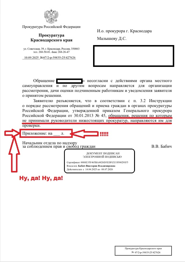 #ПрокуратураКубани #Бабич #Беспредел #Бездействие #НарушениеПрав #ЗащитаПрав #Генпрокуратура #Справедливость #Законность #Отписки #Репост
