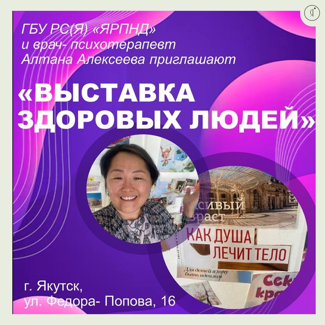 «Выставка здоровых людей» #ВГороде АНОНС СЕГОДНЯ 11 сентября | 12:00 Психотерапевтический центр ГБУ РС(Я) «ЯРПНД», Ф.Попова, 16 Вопросы и запись: +7 967 912-82-16