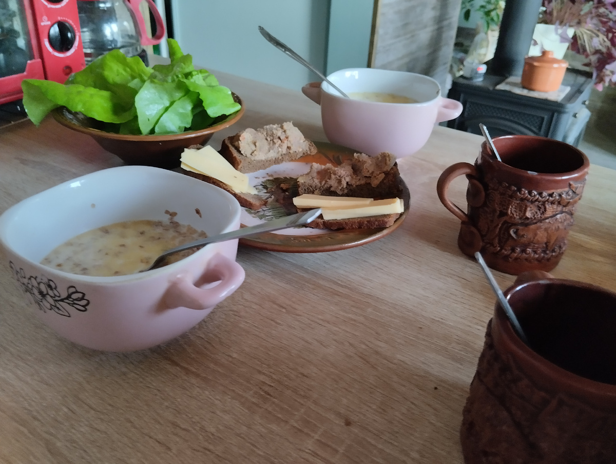 Ещё было яблоко с медом и творогом ( ДМ вечером запекал на печке), но мы решили этот десерт оставить к обеду, потому что завтрак и так был сытным.