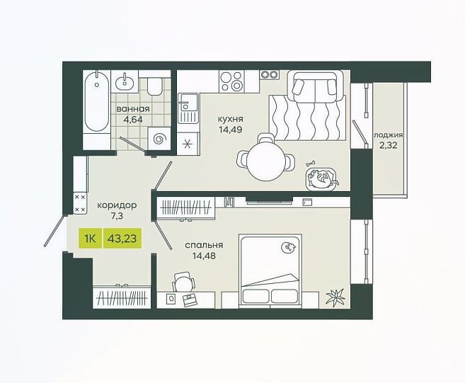 Квартира для семьи рядом с Инюшинским бором. Первый взнос всего от 🟠🟠🟠🟠🟠🟠 рублей. 1-комнатная 43,23 м² Характеристики объекта: Тип: 1-комнатная Площадь: 43,23 м² Срок сдачи: 2 квартал 2027 года Этаж: 12 Финансовые условия: Собственные средства: 750 000 руб. Стоимость по ДДУ: 7 227 784,73 руб. 👉👉 Ежемесячный платеж: 34 625 руб.