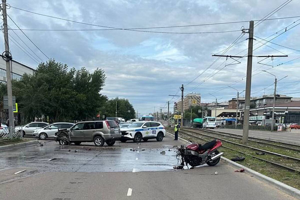 Накануне в Улан-Удэ на ул. Ключевская 67-летнийводитель автомобиля «Ниссан Икстрэйл» при выезде с прилегающей территории не предоставил преимущества в движении и совершил столкновение с мотоциклом «Кавасаки» (без государственного регистрационного знака) под управлением 24-летнего водителя (без прав).