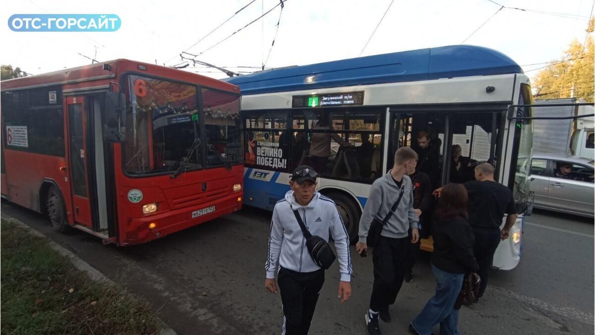 Автобус врезался в троллейбус на площади Кирова в Новосибирске