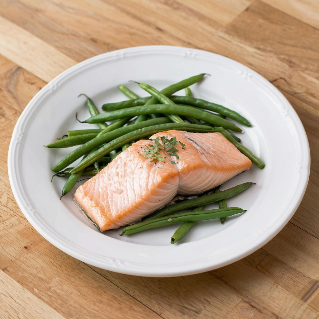 Приготовьте идеальный ужин всего за полчаса с нашим рецептом лосося на пару с зеленой фасолью. Нежнейшее филе рыбы дополняют свежие овощи, ароматные специи и легкая заправка. Это блюдо станет вашим любимым вариантом здорового ужина, который можно приготовить даже после напряженного рабочего дня. ▌ Ингредиенты * Филе лосося — 4 шт. * Зеленая фасоль свежая — 200 г * Лимон — половинка * Оливковое масло — 2 ст.л. * Морская соль — по вкусу * Черный молотый перец — по вкусу * Свежая зелень петрушки * Имбирь свежий — небольшой кусочек ▌ Шаг за шагом ▌ Этап 1. Подготовка ингредиентов Перед началом приготовления подготовьте ингредиенты. Фасоль промойте и удалите кончики, имбирь очистите и натрите на мелкой терке. ▌ Этап 2. Готовим рыбу Разложите филе лосося на решетке пароварки кожей вниз. Посыпьте солью, перцем и небольшим количеством оливкового масла. Немного полейте лимонным соком сверху каждого кусочка. ▌ Этап 3. Варим фасоль В отдельной кастрюле вскипятите воду, добавьте немного соли и вар