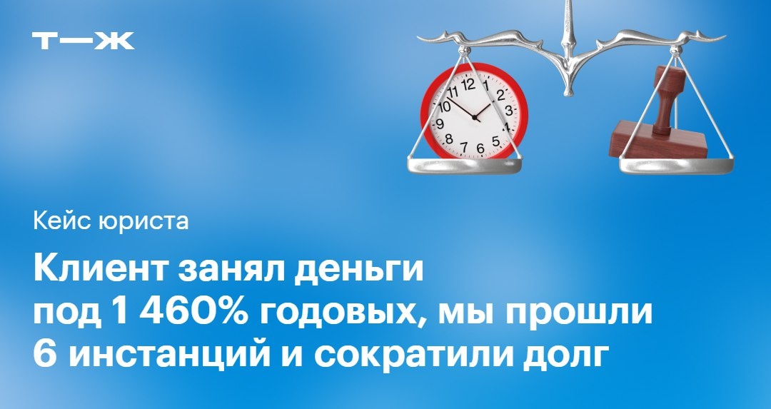 2021 год: Сергей взял у Кирилла в долг 6 240 ₽ на десять дней под 4% в день и ничего не вернул. 2022 год: Кирилл подал на Сергея в суд и потребовал 86 326 ₽. В каждой инстанции судебный акт отменяли или изменяли предыдущее решение — и не всегда в нашу пользу. Мы добились своего, но могло быть иначе. Почитать, к чему пришли стороны полтора года спустя: https://t-j.ru/tg/law-story-umenshil-summu-trebovanii-v-4-raza/