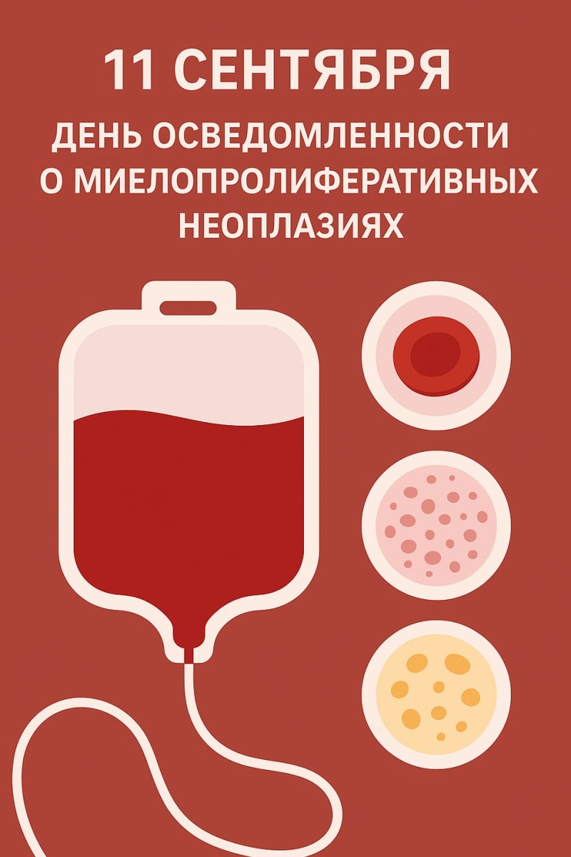 ☀️ Доброго утра! 🩸 Сегодня — День осведомленности о миелопролиферативных неоплазиях (МПН) Это группа редких видов рака крови, при которых костный мозг начинает вырабатывать слишком много кровяных клеток — эритроцитов, лейкоцитов или тромбоцитов. Что важно знать: 🔹 Эритроциты переносят кислород к тканям. 🔹 Лейкоциты защищают организм от инфекций. 🔹 Тромбоциты помогают остановить кровотечение. Когда система ломается из-за мутаций, клетки начинают расти без контроля, что и приводит к МПН. Три наиболее частых варианта: — Истинная полицитемия: слишком много эритроцитов → кровь становится вязкой, растёт риск тромбов. — Эссенциальная тромбоцитемия: слишком много тромбоцитов → возможны как кровотечения, так и тромбы. — Миелофиброз: костный мозг постепенно замещается рубцовой тканью → нормальное кроветворение нарушается. 📌 Болезни развиваются медленно, чаще после 50–60 лет. Их невозможно «вылечить полностью», но современные методы позволяют контролировать симптомы, предупреждать ослож