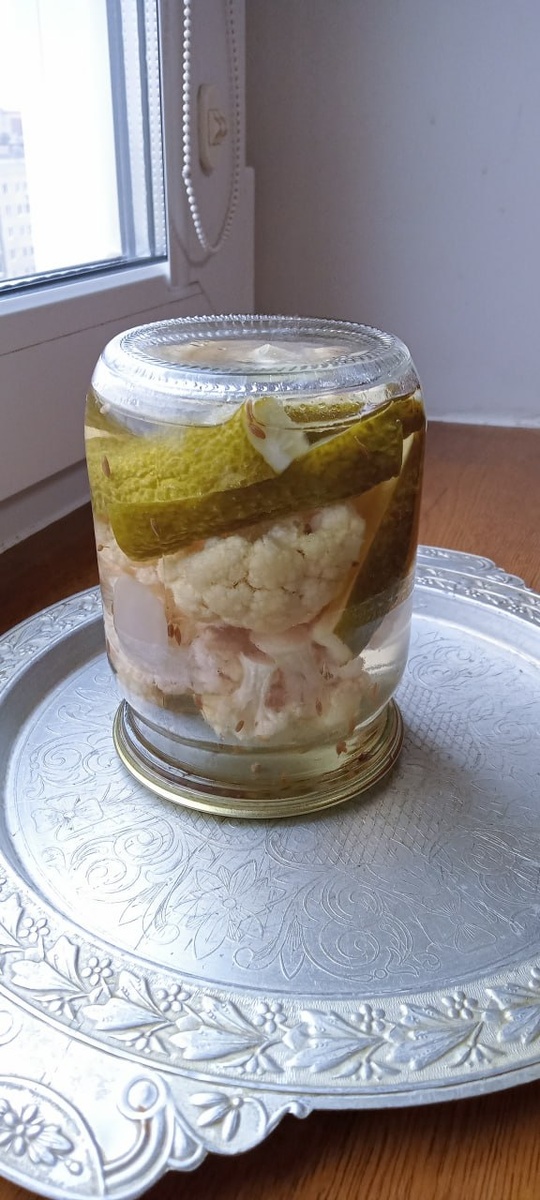 🥒🌸 Маринованная цветная капуста с огурцами ✨ Простая и надёжная заготовка, которая прекрасно хранится и радует зимой свежим вкусом. 🌿 Ингредиенты (на банки любого объёма): Цветная капуста Огурцы По 1 шт. гвоздики в банку По 2–3 шт. чёрного перца горошком Немного семян укропа 🔥 Маринад (на 1 л воды): 1 ст. л. каменной соли с горкой 4 ст. л. сахара с горкой 4 ст. л. 9% уксуса 👩🍳 Приготовление: Банки вымыть с содой или горчичным порошком, простерилизовать. На дно положить специи, выложить огурцы и капусту. Залить кипятком, накрыть крышками и оставить на 20 минут. Воду слить, приготовить маринад: растворить соль и сахар, довести до кипения, снять с огня, влить уксус. Горячим маринадом залить овощи, закатать, перевернуть банки, укутать и оставить до полного остывания. ✨ Зимой такие овощи особенно хороши к горячему картофелю или каше! #заготовки@UsefulDelights