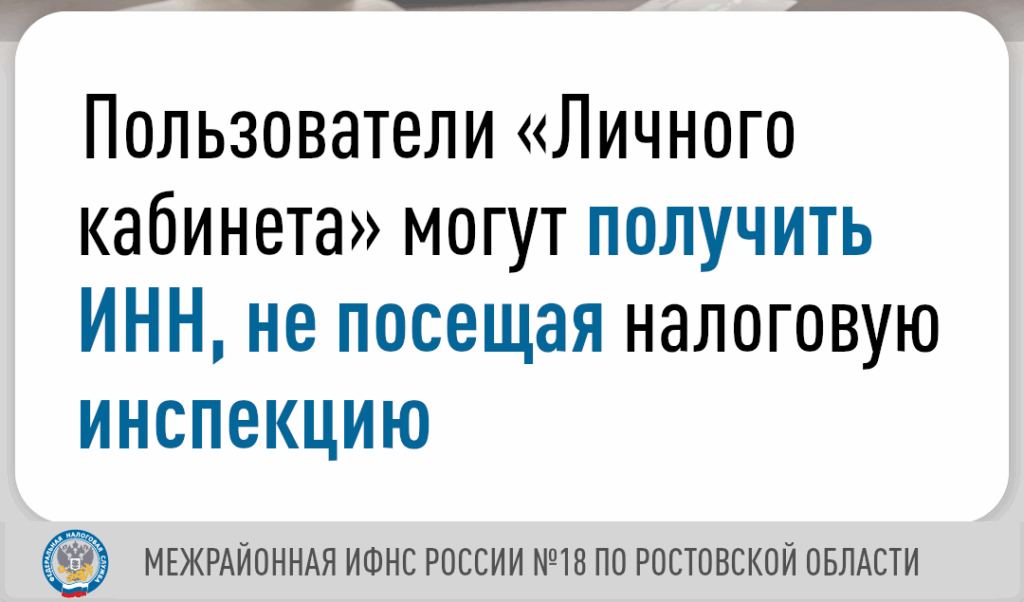Пользователи «Личного кабинета» могут получить ИНН, не посещая налоговую инспекцию