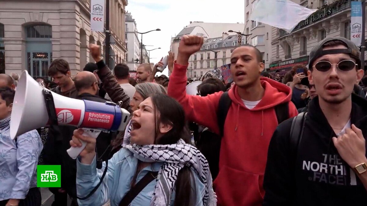 [ Смотреть видео на сайте НТВ ] Больше 500 человек задержаны во время акции протеста во Франции. Митинг стал крупнейшим со времен «желтых жилетов». На улицы французских городов под лозунгом «Заблокируем все» вышли 200 тысяч человек. Протестующие забаррикадировали дороги, захватили вокзалы и даже школы. Полиция всю ночь освобождала учреждения от демонстрантов. Французы недовольны политикой жесткой экономии. Госдолг страны достиг трех триллионов евро. Правительство Макрона хочет сократить его за счет уменьшения социальных пособий и пенсий. Участница акции: «Макрон продолжает с таким же презрением игнорировать волю народа. Но мы требуем не просто отставки или импичмента президента Макрона. Наши требования гораздо глубже: мы хотим положить конец всей этой капиталистической политике в целом. Мы требуем создания рабочего правительства, которое будет отстаивать права и интересы всех нас». Участник акции: «Мы здесь потому, что это правительство в который уже раз пытается провести ту же самую м
