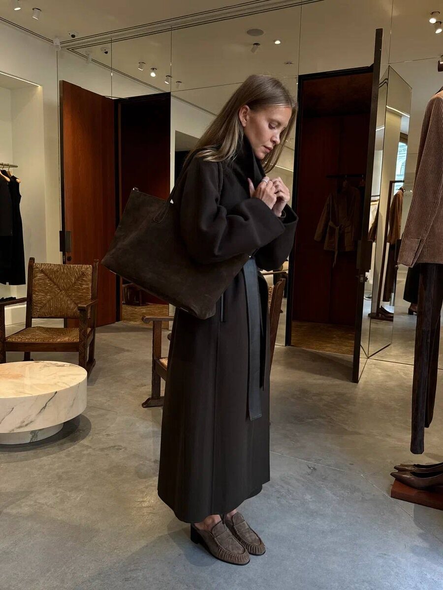 Мягкая ткань из шерсти и кашемира согревает и не колется, а новый пояс из натуральной кожи подчеркивает силуэт. Носим поверх объемных свитеров или жакетов, а в теплые осенние дни оставляем распахнутым, как легкий кардиган