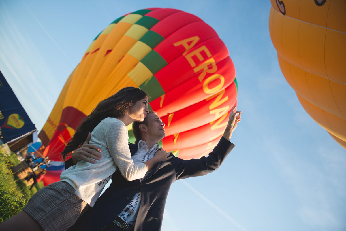 - Романтика. Представьте себе: рассвет или закат, вы вдвоем в плетеной корзине, шампанское и захватывающие виды, простирающиеся до самого горизонта. Идеальное место для признания в любви или празднования годовщины. Многие компании предлагают полеты в шарах в форме сердца, добавляя особый штрих в романтическую атмосферу.