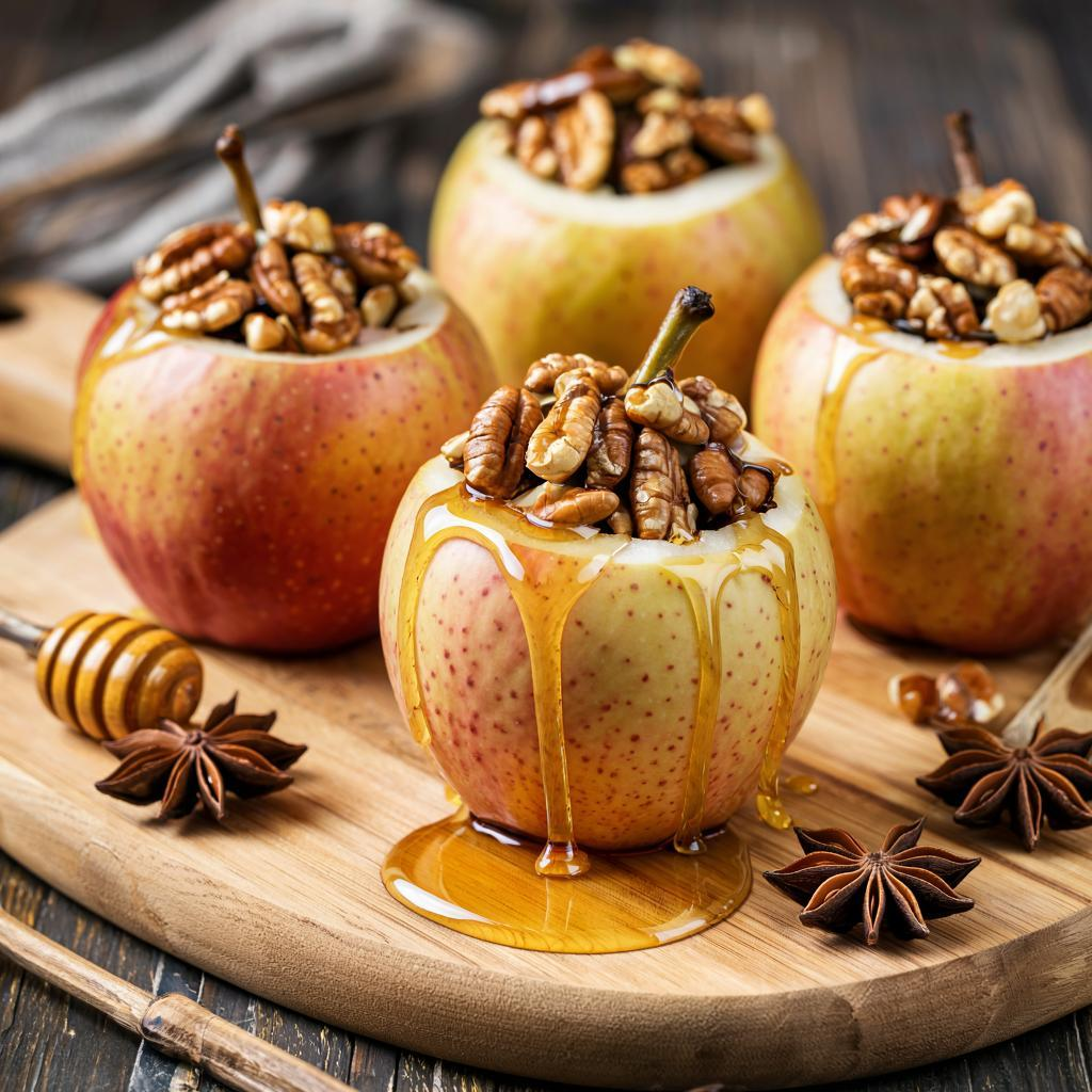Добро пожаловать в мою кухню, дорогие гурманы! Сегодня мы приготовим настоящее лакомство, которое идеально подойдет как для семейного ужина, так и для праздничного стола. Представляю вашему вниманию рецепт печеных яблок с орехами и мёдом — простое блюдо, сочетающее сладость фруктов, аромат специй и хрустящую нотку орешков. ▌ Почему именно этот десерт? Почему бы не приготовить классическое яблочное пюре или шарлотку? Ответ прост: печеные яблоки сохраняют максимум полезных веществ и витаминов, дарят организму энергию и улучшают настроение. Добавьте к этому нежнейший вкус меда и слегка солоноватую хрустинку грецких орехов — и перед вами идеальный баланс вкусов и ароматов! ▌ Что понадобится? ▌ Ингредиенты: - Яблоки крупные (лучше кисло-сладкого сорта) — 4 шт.; - Грецкие орехи очищенные — ½ стакана; - Мед натуральный жидкий — 3 ст.л.; - Корица молотая — щепотка; - Масло сливочное мягкое — 2 ч.л.; - Щепотка соли для контраста вкуса. ▌ Инвентарь: - Противень; - Бумага пергаментная; - Ножик ос