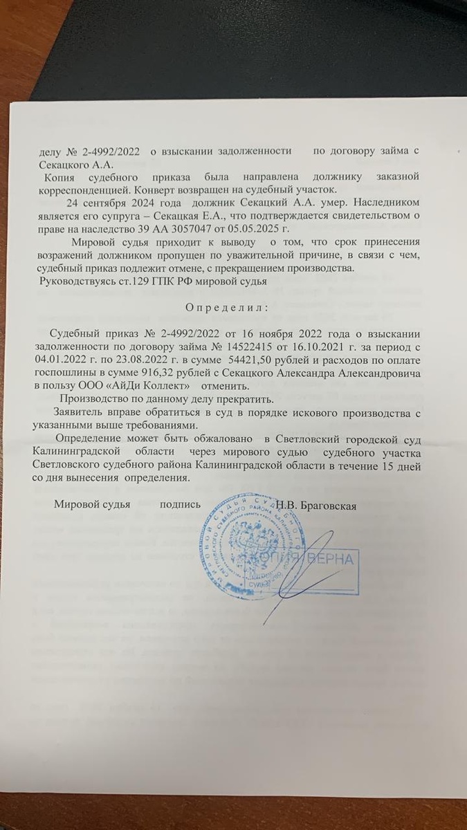 КАКОЙ ТОЛЬКО ШВАЛИ НЕ ВОДИТСЯ В КАЛИНИНГРАДСКОЙ ОБЛАСТИ…🤦♂️🤦♂️🤦♂️ И НА ТОМ СВЕТЕ ДОСТАЛИ ДОЛЖНИКА…((( ОТМЕНА «ПОКОЙНЫХ» СУДЕБНЫХ ПРИКАЗОВ ПРОШЛА КАК ВСЕГДА УСПЕШНО!!!😎😎😎 НАСЛЕДУЕМОЕ ИМУЩЕСТВО СПАСЕНО!!!🥳🥳🥳👍👍👍