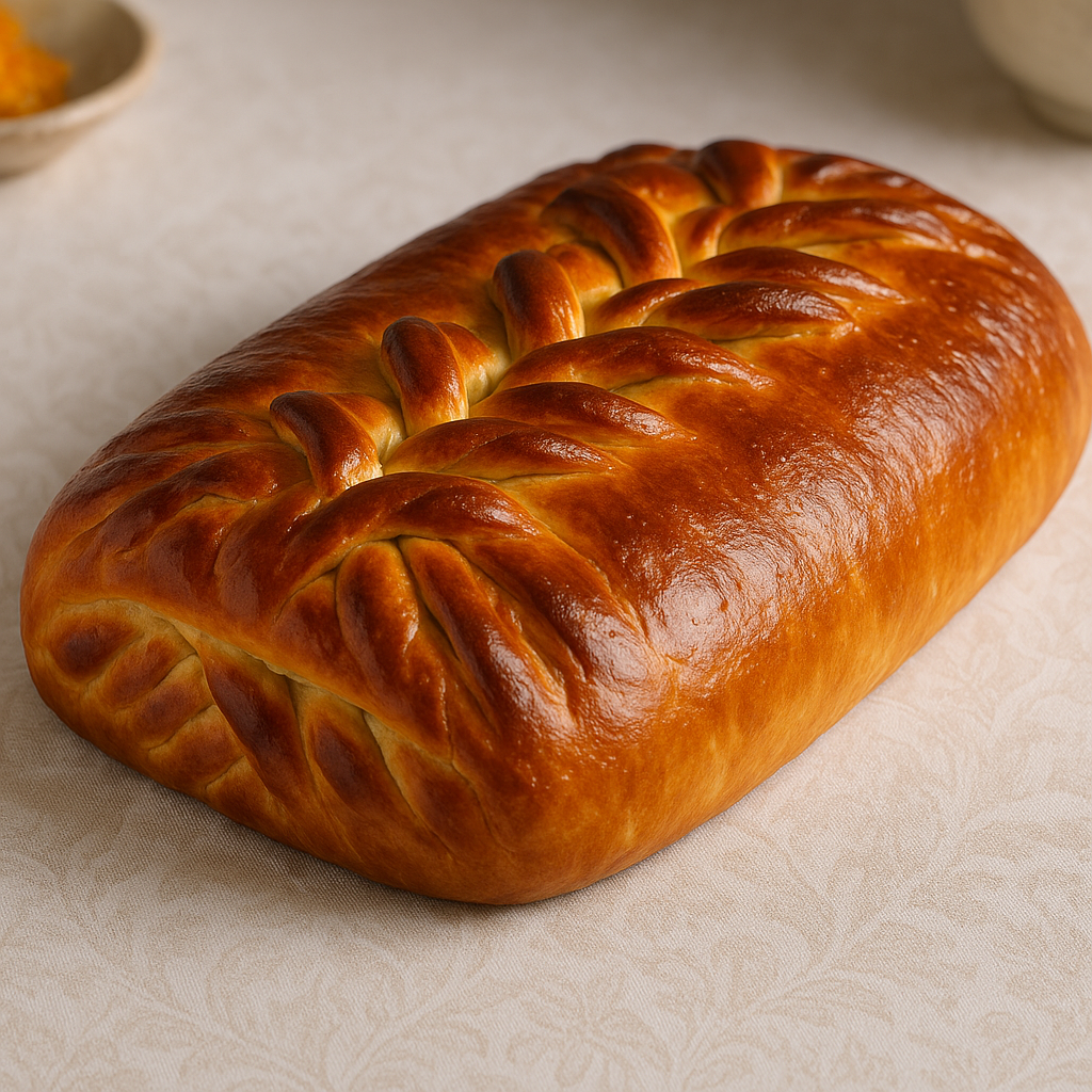 Есть в русской кухне блюда, которые не просто еда, а маленькое событие. Кулебяка — как раз из таких. Это вкуснейший и очень сытный пирог: с сочным мясом, сладкой тыквой и ароматом, который заполняет кухню ещё задолго до готовности. Осенью она особенно хороша — когда хочется тепла, насыщенности и кусочка чего-то настоящего, домашнего. Кулебяка — старинный русский пирог с многослойной начинкой. В царской кухне она считалась деликатесом и могла содержать до четырёх разных начинок, разделённых блинами. Сегодня мы готовим её в более домашнем, но не менее выразительном варианте — с мясом и тыквой. Такое сочетание — традиционное для русской северной кухни. Для теста (дрожжевое): Для начинки: Для смазывания: Смешайте тёплое молоко с сахаром и дрожжами. Оставьте на 10 минут — дрожжи должны активироваться (появится пена).