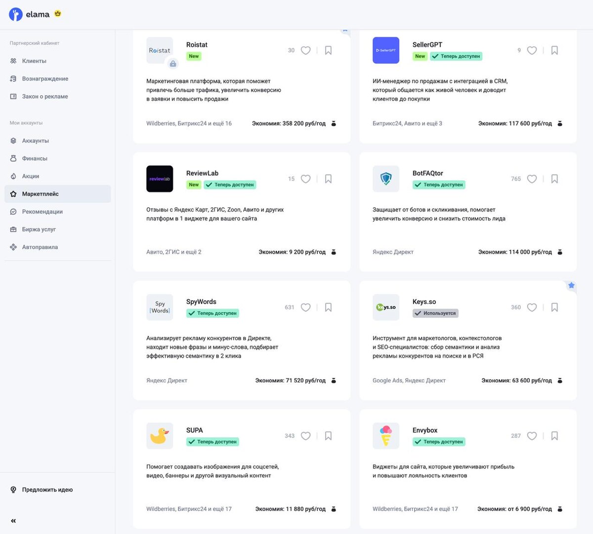 Когда выполняются определенные условия по количеству бюджета и проектов (речь про агентский кабинет), открывается доступ к большому количеству инструментов. Хочу отметить, к бесплатному доступу!