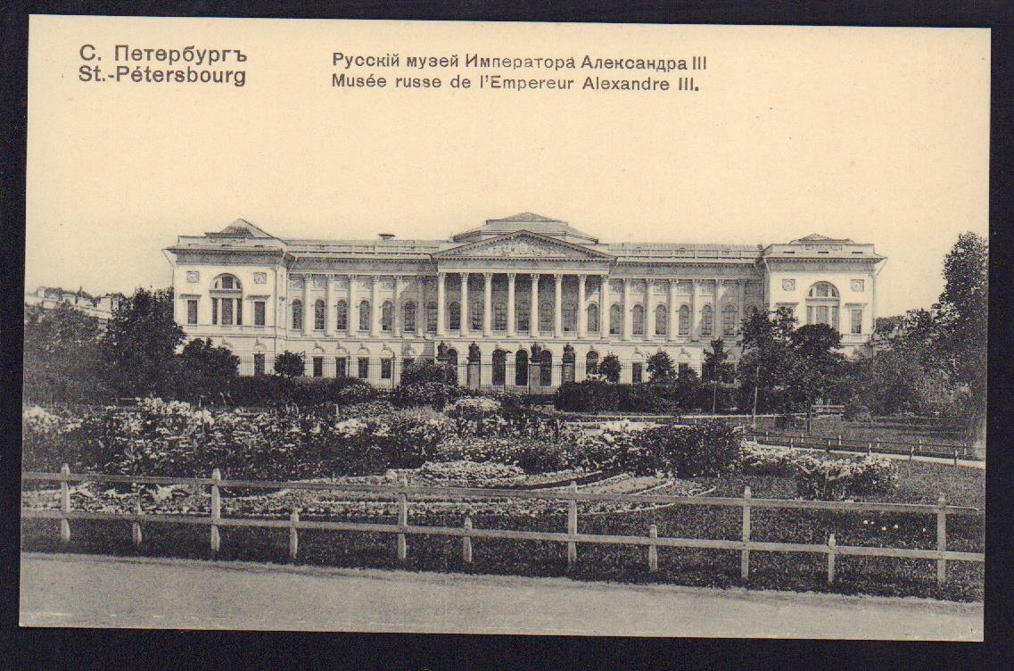 Для читателей, не следящих за тем, что делается в петербургских художественных кругах, расскажу довольно длинную, хотя и скверную историю в двух словах. Император Александр III, как известно, был глубоко русский и любивший Россию человек. Он чувствовал, что великая государственность не может существовать иначе, как опираясь на великую национальность, и вот во всё время своего, к сожалению, краткого царствования Он старался пробудить дух национальный, возвеличить народное сознание, дать ему широкие дали в прошлое и будущее. В числе благородных замыслов Александра III был и такой: создать в Петербурге русский музей, достойный этого имени. Пробудить и вознести дух народный нельзя иначе, как сосредоточив его внимание на славном прошлом, на том, чего талантливые русские люди когда-то достигли по всем направлениям и, между прочим, в области искусств. Нас, Русских, угнетает ложная мысль, будто мы ничего не внесли в человеческую цивилизацию и не нам, мол, тягаться с великими народами Запада. Мысль это невежественная и зловредная. Созданием огромного — как в столицах Запада — музея искусств и сосредоточением в нём предметов высшего нашего творчества не трудно доказать, что народ русский при благоприятных условиях обнаруживает ту же гениальность, как и другие народы арийской расы, и что он вправе гордиться не только государственной силой, но и культурной. Таким мне лично представляется замысел создания Русского музея Александра III. Покойный государь не успел осуществить свою мысль; она была приведена в исполнение ныне царствующим Государем, посвятившим музей памяти своего державного Отца. Под музей отвели выкупленный казною Михайловский дворец — прекрасное творение К. Росси в центре столицы с красивой площадью и огромным садом позади. Отпущены были средства для перестройки дворца сообразно с новым назначением, и работа закипела. Указ состоялся в апреле 1895 г., а в марте 1898 г. состоялось уже открытие музея.