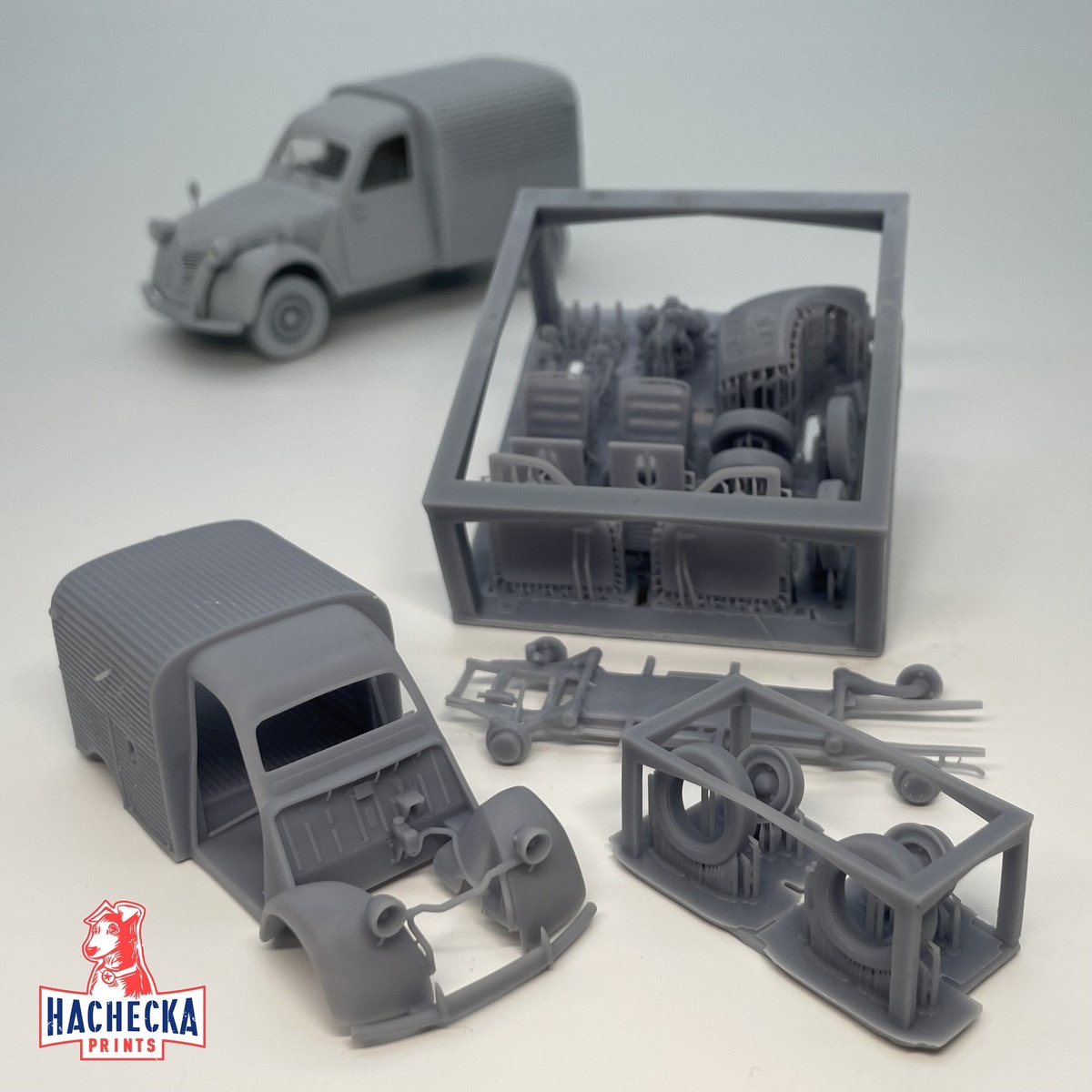 Французская Hachecka Prints показала детали своих выращенных на 3D-принтере моделей Citroën 2CV 1948 года в масштабе 1/48: пикап, фургон и