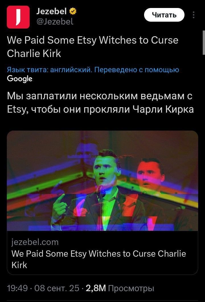 Пост за два дня до убийства американского блогера и политика Чарли Кирка