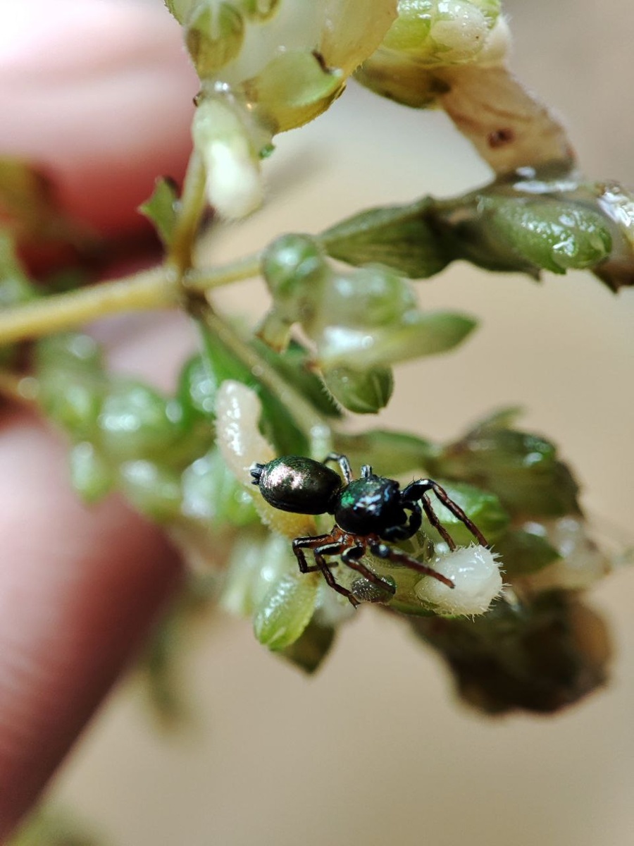 Помните, жаловалась недавно на прелести жизни на лоне природы? Ну вот. Сижу, пью чай, никого не трогаю. Чай вкусный, с душицей и молоком. Беру чашку отпить, а там паук. Дрейфует на веточке. Ну не то чтобы ПАВУК 😲, а так, паучишка. Сначала возмутилась, а потом увидела, что он из красивых. Сам переливчатый, ещё и царских кровей — видите, корона на попе!