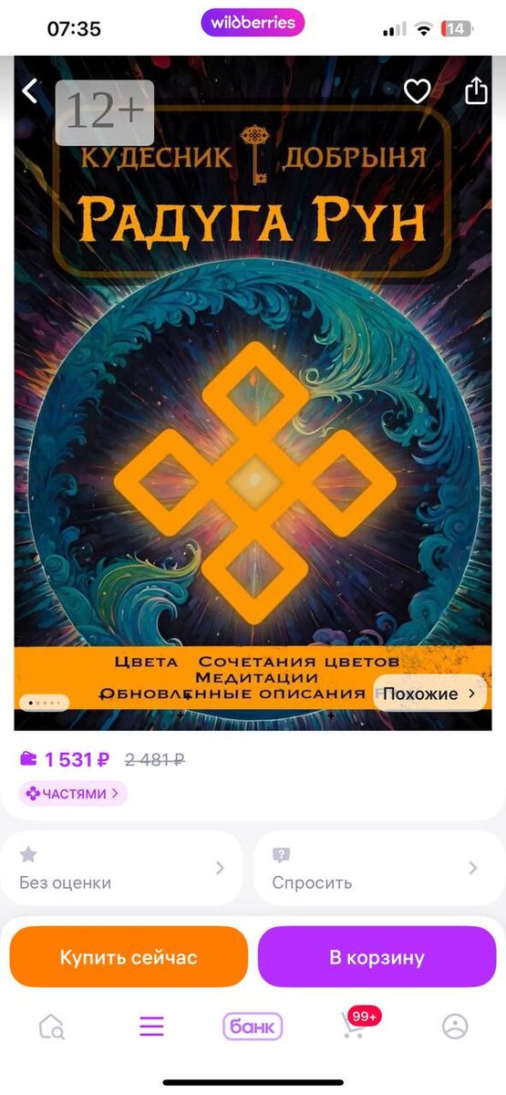Новость за новостью. Только ругал Wildberries за наценки, как увидел, что бумажная книга там тоже по адекватной цене! Радуга Рун https://www.wildberries.ru/catalog/524973769/detail.aspx?size=724434526