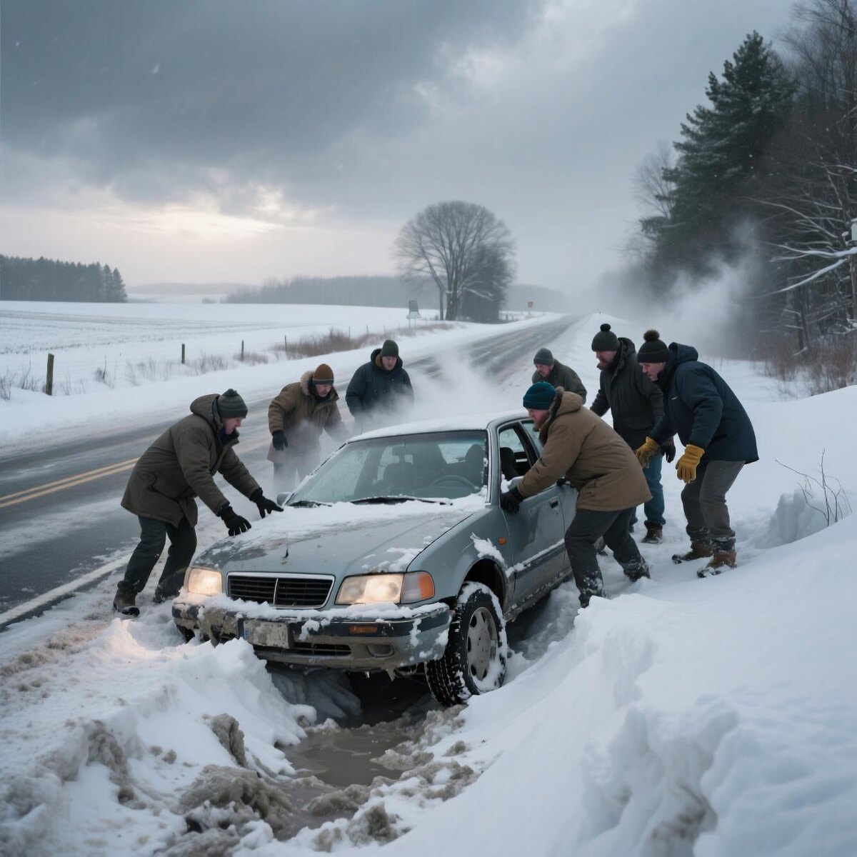 Вы застряли в снежном кювете. Машину нужно толкать.