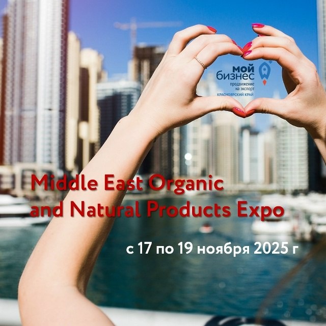 🚀 С 17 по 19 ноября 2025 года центр поддержки экспорта (структурное подразделение центра "Мой бизнес" Красноярского края) организовывает коллективный стенд на Middle East Organic and Natural Products Expo в г. Дубай, ОАЭ!