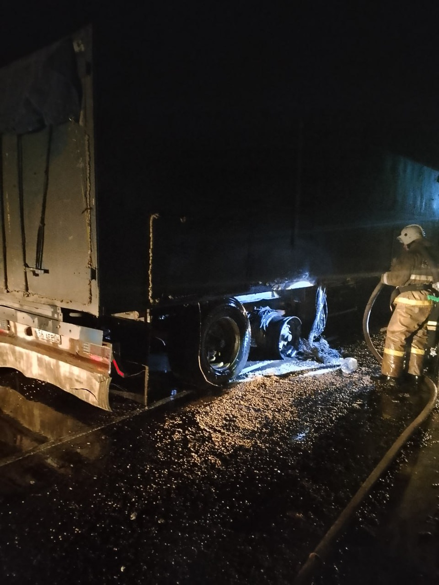 На 657-м километре автодороги «Казань – Оренбург» в Октябрьском районе полностью сгорел прицеп грузового автомобиля