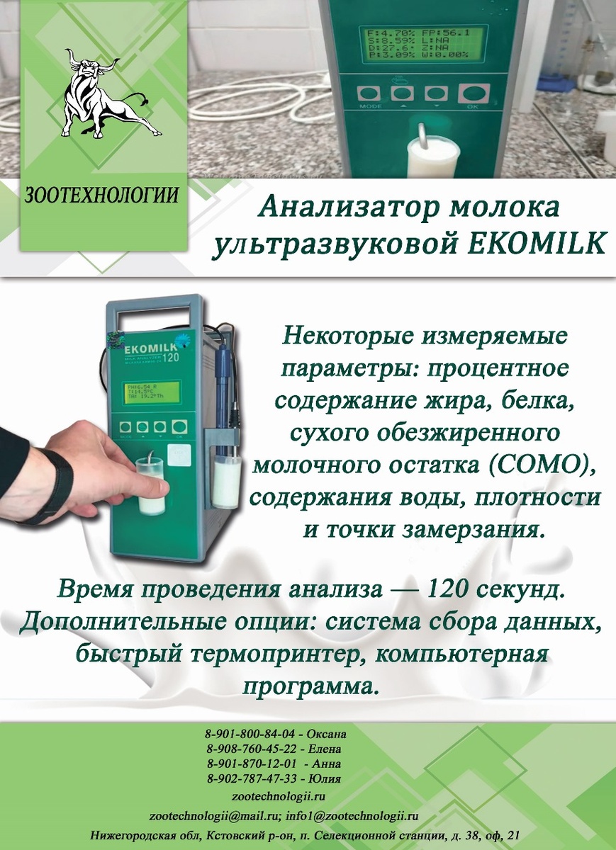 Добрый день. В продаже анализатор молока «Экомилк» с определением 6 параметров, который предназначен для контроля качества молока. Прибор позволяет измерять такие показатели, как жир, белок, сухой обезжиренный молочный остаток (СОМО), добавленная вода, плотность и точка замерзания молока. Анализатор используется в заводских и ветеринарных лабораториях, приёмных пунктах, мини-заводах и молочных фермах. Также прибор может применяться для контроля параметров технологических молочных смесей, которые не содержат сахара и солей (хлорида натрия, хлорида кальция и др.). Оставить заявку можно у наших менеджеров: Оксана: 8-901-800-84-04 Елена : 8-908-760-45-22 Анна: 8-901-870-12-01 Юлия: 8-902-787-47-33 Смотрите нас на Rutube✅ #Анализатор_молока #КРС