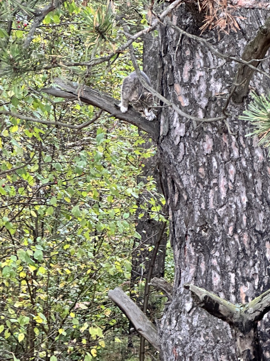 Начнём утро с кошек. Налив кофе и потом только продрав глаза, хромая и позёвывая, я пошла выпускать свой детский сад на улицу. Ира! Ну кто ещё сомневается в том, что она Ира? Нет, Ира это не просто имя, это призвание и состояние души. Все мои знакомые и подруги Иришки, все Иринки в этом блоге, вы классные! Вы необычные, вы — ИРЫ! Хотя, знаю, многие Иринки не любят, когда их называют Ирами. Но, Ирой надо родиться, как наша, например. Стартанув быстрее всех из двери, быстрее всех и оказалась у калитки, успев пробежать по цветам, она пролезла под низом и остановилась у входа в лес. Прихлёбывая кофе, я не сообразила что нужно фотографировать. Зато я поняла, что собаки далеко не отойдут, ведь здесь Иринка и её надо охранять. - Доброе утро, как там Дунечка? - пишет неравнодушная доктор. - Доброе утро, отлично. Сидит на дереве. -? Я отправляю фото, теперь доктор подумает, что мы натурально живём в лесу. Начинается ор, на всю округу. -Мивууу, снимите... -Умолимяууу, снимиии. Рыжики волн