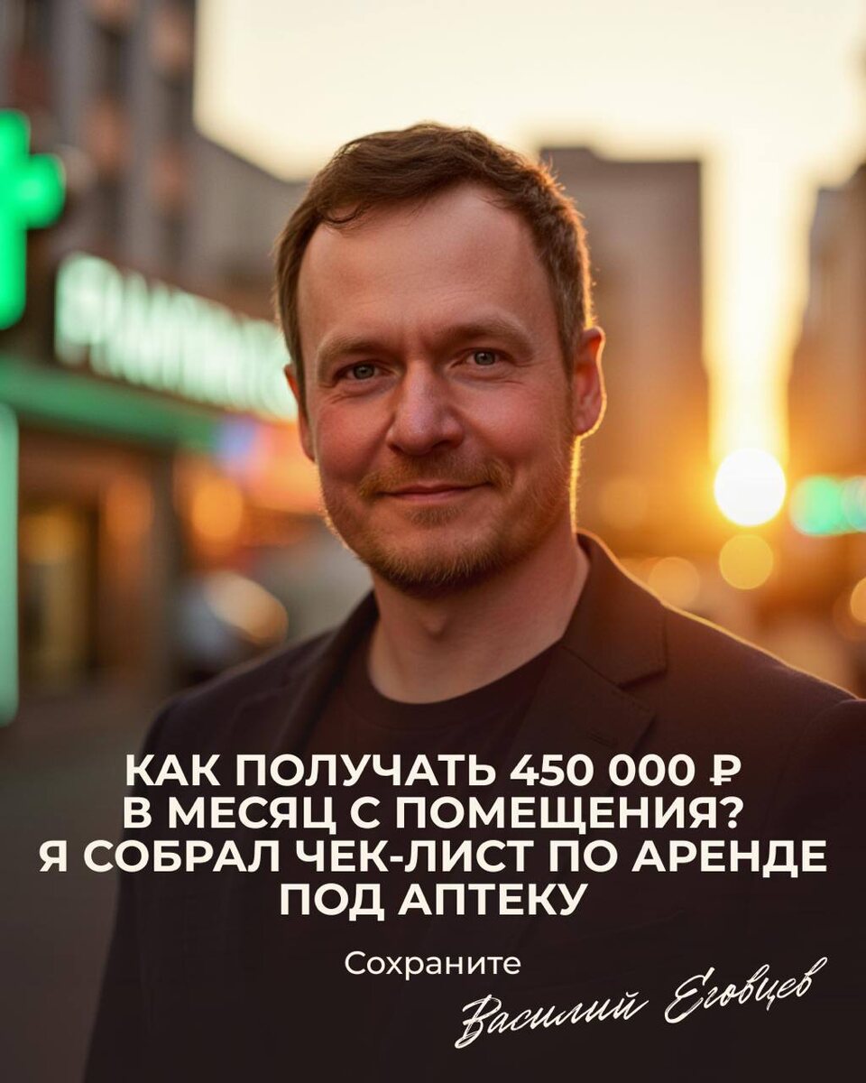 Как получать 450 000 ₽ в месяц с помещения? Я собрал чек-лист по аренде под аптеку. Сохраните. Средний договор аренды у аптек — 5–10 лет. Для собственника это значит одно: объект работает без перебоев, а капитал растёт. Я собрал чек-лист: как считать доходность, на что смотреть и с кем связаться напрямую. 📌 Сохраните этот пост. Он может стать вашей инструкцией, когда придёт время искать арендатора. ⸻ ✅ Чек-лист собственника 1. Посчитайте доходность • Средняя ставка аптеки: 3 000–3 500 ₽ за м². • Помещение 150 м² = до 450 000 ₽ в месяц или 5,4 млн ₽ в год. 2. Примените правило «100 аренд» • Доход 450 000 ₽/мес → объект стоит ≈ 45 млн ₽. • В топовых локациях это может быть чуть выше — до 110–120 аренд, но правило остаётся надёжным ориентиром. • Это честная оценка капитала, а не «цена с воздуха». 3. Узнайте реальные требования • Например, у Риглы и 36.6 требования: площади от 40 до 150 м², первый этаж, отдельный вход, санузел. 4. Почему аптека = надёжный арендатор • Долгие догов