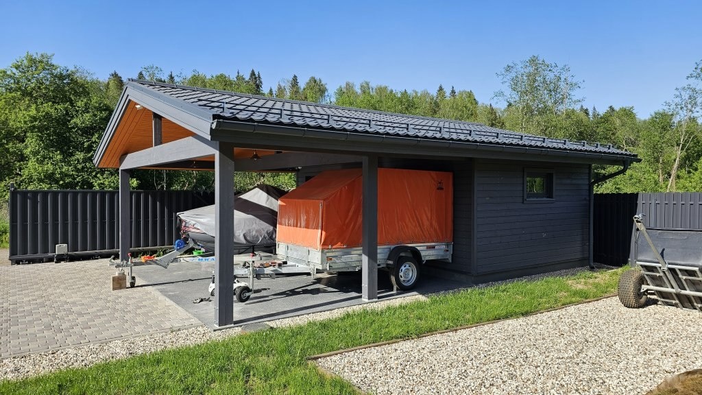 Знакомьтесь: новая глава саги под названием «НЕбюджетный гараж с навесом 6.8х9.1 м»:
