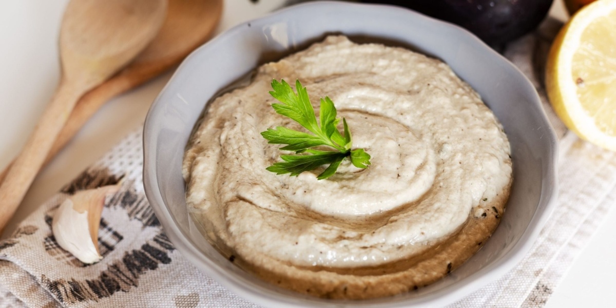 👨👩👧👦 Порций: 4 Шаг 1. Сделайте несколько проколов в баклажане вилкой, чтобы он не лопнул во время запекания. Шаг 2. Смажьте противень подсолнечным маслом и выложите баклажан. Запекайте при 200 °С 30–40 минут, периодически переворачивая, пока овощ не станет мягким. Шаг 3. Переложите горячий баклажан в ледяную воду, остудите и снимите кожицу. Шаг 4. В блендере соедините мякоть баклажана, лимонный сок, тахини, кунжут и измельчённый чеснок. Взбейте до однородной массы. Совет: сначала добавьте часть лимонного сока, а затем регулируйте вкус. Шаг 5. Приправьте солью и