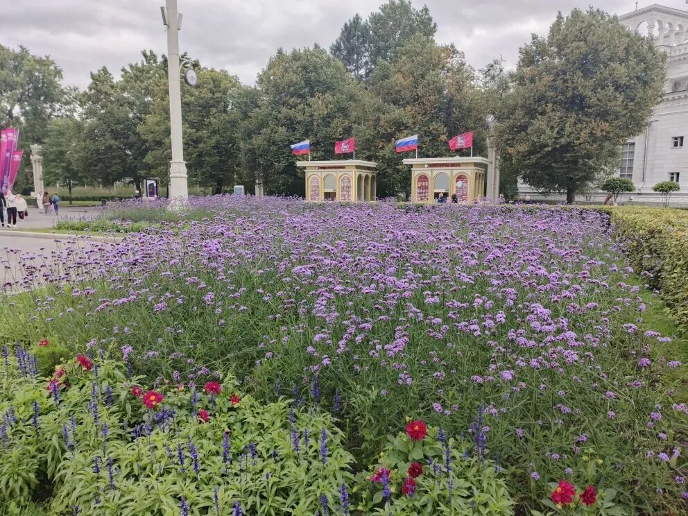 Вы выращиваете вербену бонарскую? Она же вербена буэнос-айресская. Я два года подряд ее сажаю, не то чтобы целенаправленно, просто один хороший человек делится со мной рассадой по весне. В прошлом году она росла у стены дома, посаженная в ряд. Не впечатлила. Народ посоветовал сажать вербену обособленно, чтобы со всех сторон просматривалась воздушность нежных соцветий. Нынче я дала ей простор, посадила кучкой в центре клумбы. И она действительно смотрится лучше. Возможно, этому поспособствовало и обилие дождей, у нее даже соцветия как-то пышнее смотрятся. А недавно я посетила московскую книжную ярмарку. Вот просто так сорвалась в сезон сбора урожая на недельку в первопрестольную. Уж очень захотелось. Приспичило, что называется. Давно не посещала эту ярмарку. Нынче она вернулась на ВДНХ. А там, помимо книг, я еще и шикарным цветением полюбовалась. И что же увидела? Можно сказать, что нынче (про прошлые годы не могу судить) на ВДНХ солирует вербена бонарская (наравне с неизменными розами,