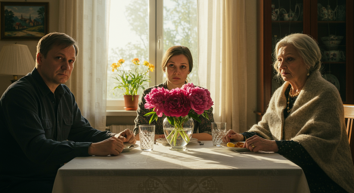Солнечные лучи, пробиваясь сквозь безупречно вымытое окно, рисовали на накрахмаленной скатерти дрожащие золотые квадраты. В центре стола, словно памятник самой себе, возвышалась хрустальная ваза с пионами, источавшими приторно-сладкий, душный аромат. У Тамары Захаровны всё было таким: идеальным до стерильности, правильным до удушья. Марина чувствовала себя в этой квартире чужеродным элементом, пылинкой, нарушающей идеальный порядок. Особенно сегодня, когда она, в свои пятьдесят два, снова пришла на воскресный обед с покупным тортом.