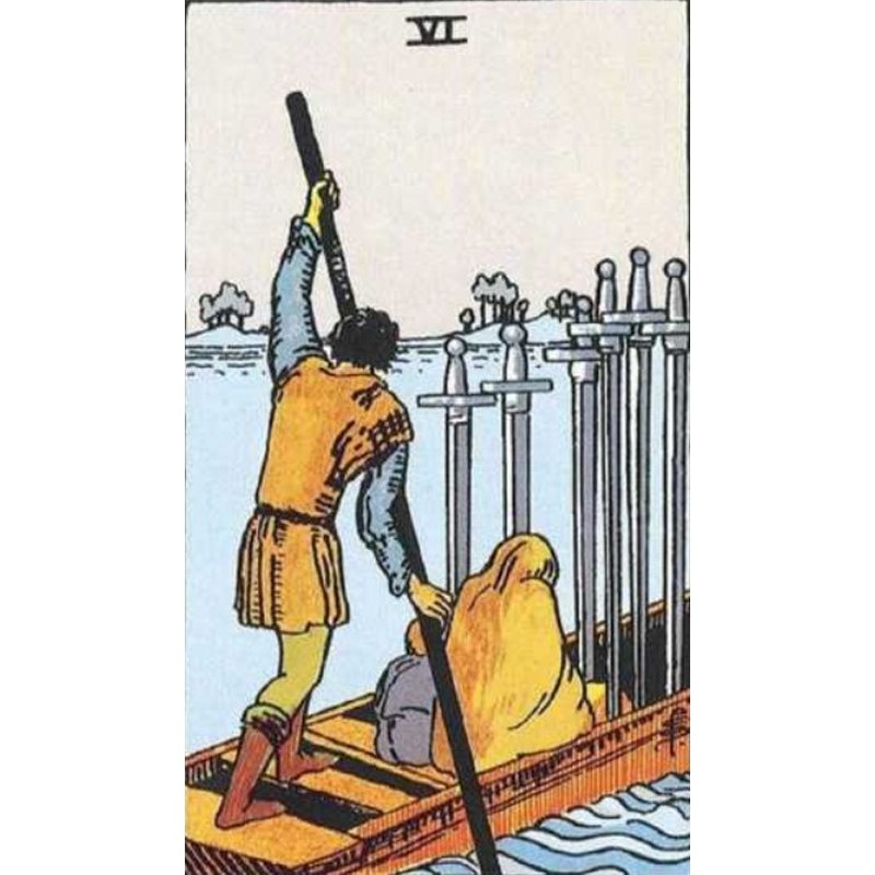 Как вам такой взгляд на 6 мечей? Имеет место быть? 6 Мечей Ну конечно же, все знакомы с этой понятной картой. В интерпретациях не возникает затруднений. Мы видим две согбенные фигуры, которые со своим скарбом (Мечами) убегают по воде в неизвестность. Так и интерпретируют эту бытовую сцену — бегство в неизвестном направлении, путешествие по воде и т.д. в том же духе. А теперь попробуем прочесть изображение, основываясь на символизме. Меч = символ стихии Воздух, а Воздух = разум, интеллект, информация. Мечи не в рабочем состоянии, просто их перевозят в лодке в неизвестном направлении (согбенные фигуры явно бегут в неизвестность). А кто перевозит Мечи, лодочник? Не совсем. Если бы это было так, у него были бы вёсла. А у лодочника в руке шест, он им только подправляет движение лодки. Лодку несёт вперёд река, мы видим рябь-волны на её поверхности. Река = Вода = эмоции. Делаем вывод/интерпретацию из увиденной, казалось бы очень бытовой, сцены: Полёт Разума (Воздух) на волне Эмоций (Вода)
