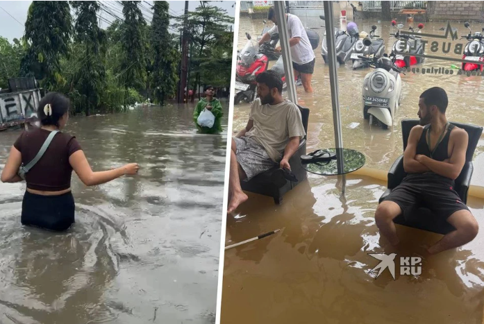 Затопило дороги, люди перемещаются на лодках: туристы показали последствия наводнения на Бали