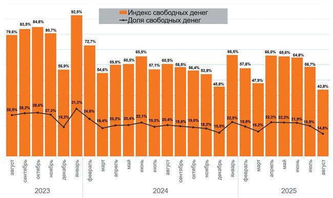 У россиян почти не остаётся денег после обязательных расходов — об этом пишет исследовательский холдинг «Ромир». В августе 2025 года семьи могли распоряжаться лишь 14,8% дохода после оплаты базовых трат. Год назад этот показатель был 20,4%, а в 2023-м — около 27%. Главный фактор — рост расходов на продукты, ЖКХ и образование. Доходы хоть и подросли номинально, но реальные возможности сокращаются. Люди экономят на отдыхе, откладывают крупные покупки и живут «от аванса до зарплаты». Дополнительное давление создают высокие тарифы и кредиты. 📉 Реальные доходы тают 🛒 Продукты и коммуналка съедают всё 💳 Закредитованность усиливает нагрузку https://dzen.ru/id/65d0bd2d3933641137a41b90 #экономика #Россия #деньги #зарплаты #инфляция #жизнь
